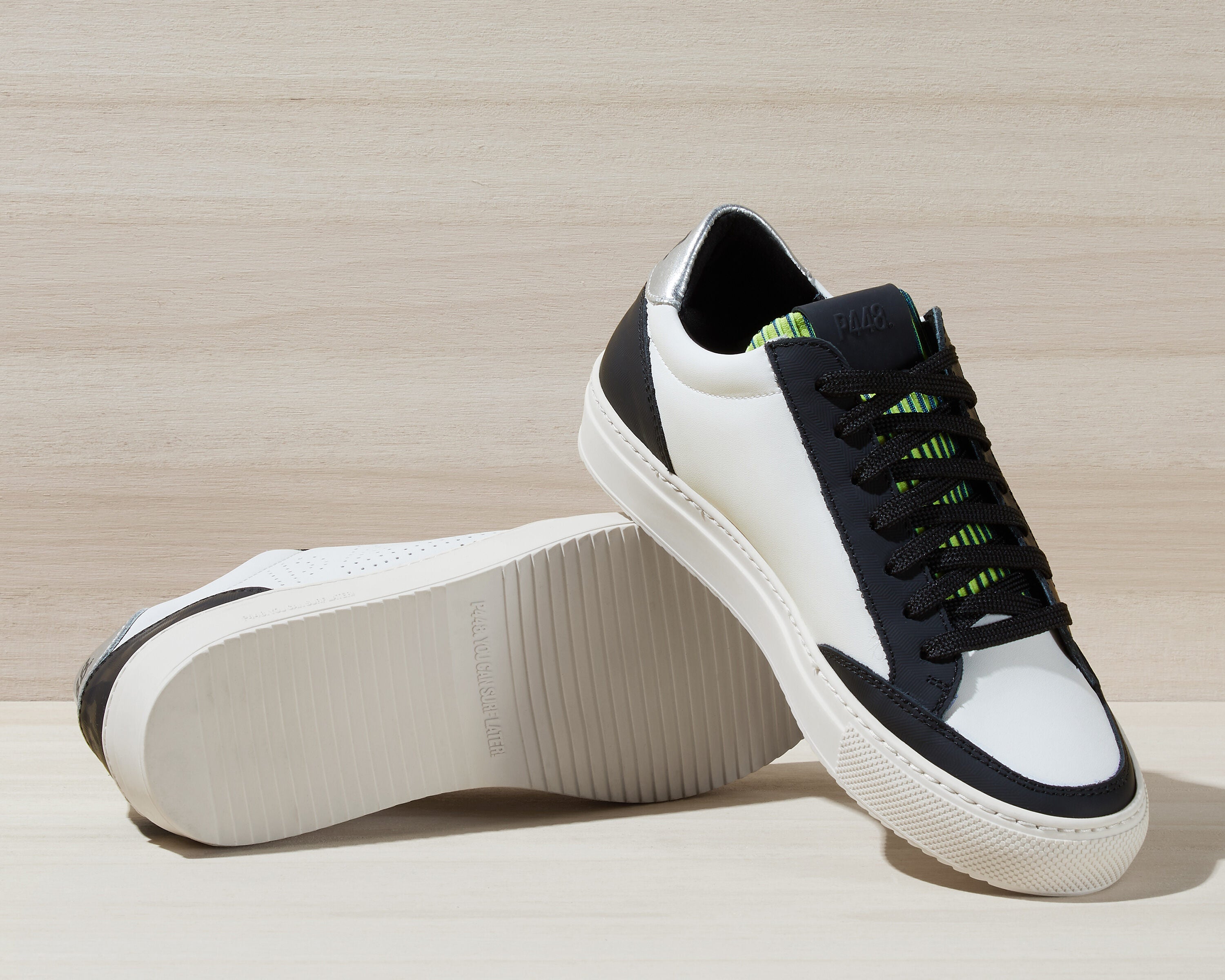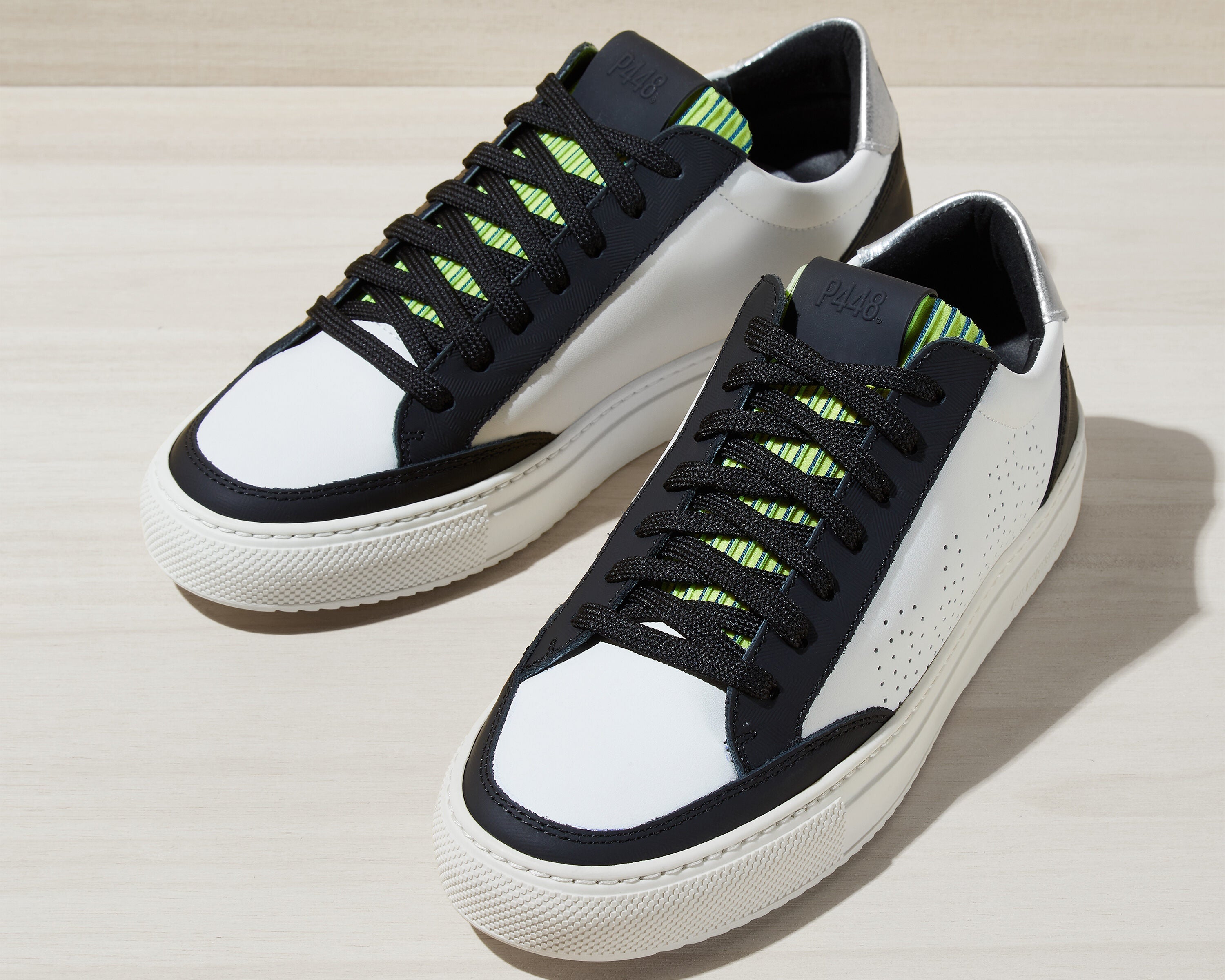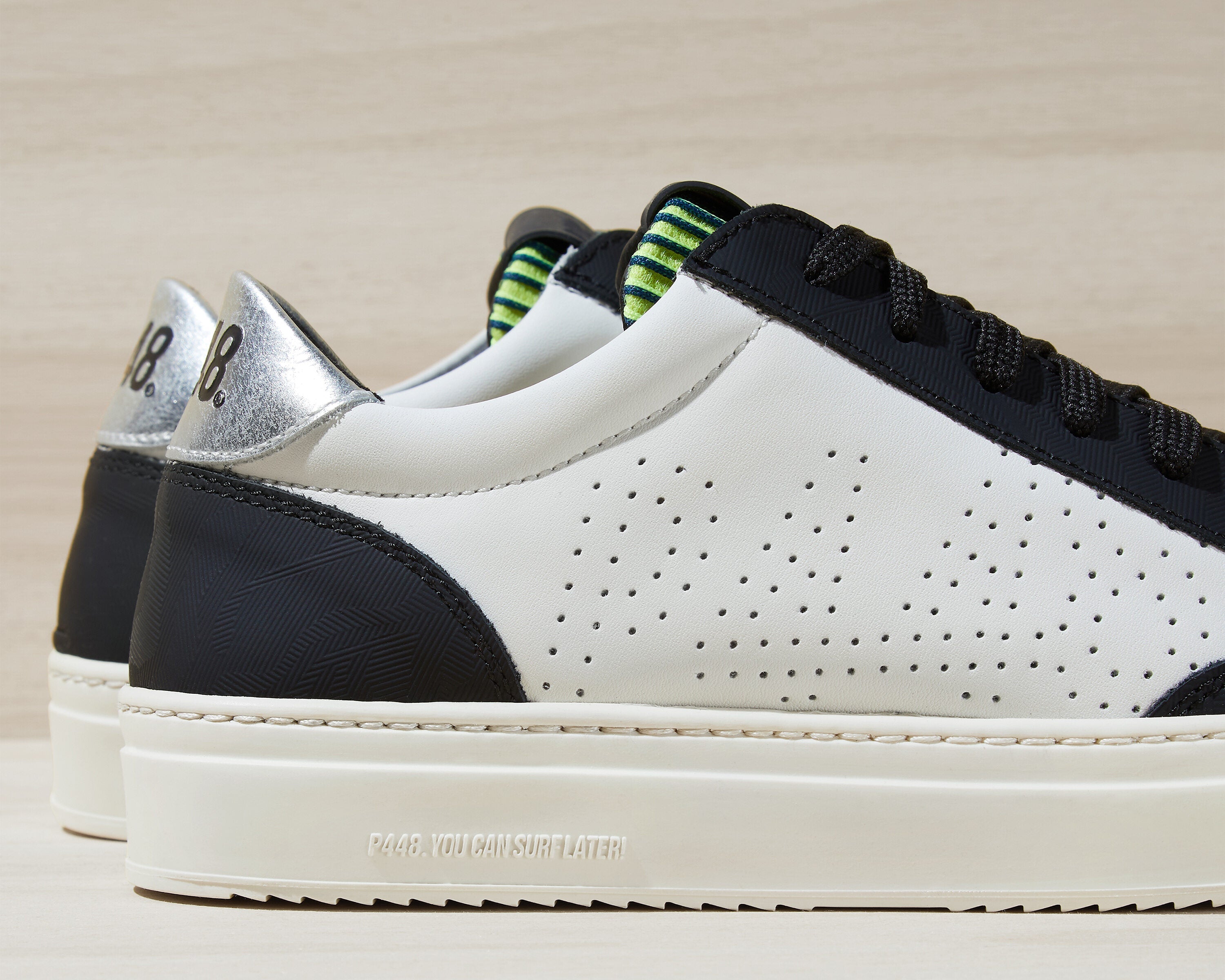 - White leather upper with perforated P448 logo